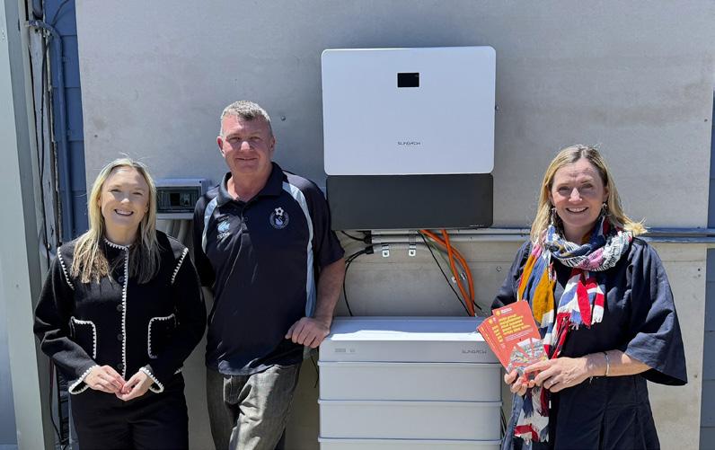 City of Newcastle’s Climate Change & Sustainability Program Lead Lexi Crouch, resident Luke York and Lake Macquarie City Council’s Sustainability Engagement Coordinator Zoe Johnson with the new battery (L to R).