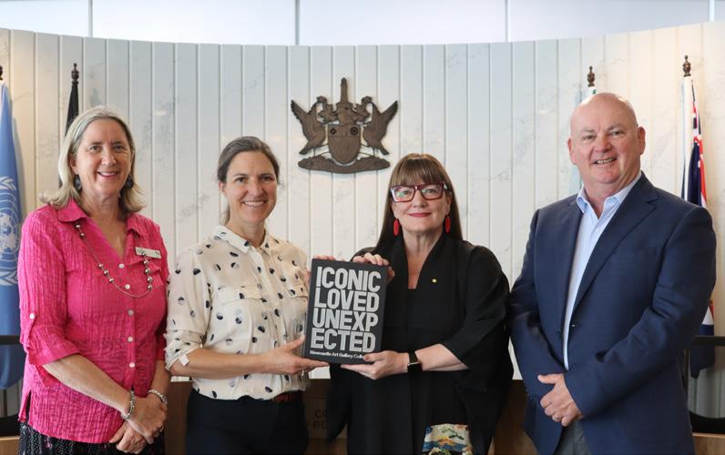 Councillor Jenny Barrie, Deputy Lord Mayor Charlotte McCabe, Newcastle Art Gallery Director Lauretta Morton and Councillor Mark Brooker. The group is pictured holding a copy of the limited-edition publication Iconic Loved Unexpected – Newcastle Art Gal ery Collection, which will be gifted to Ube City during the upcoming delegation.
