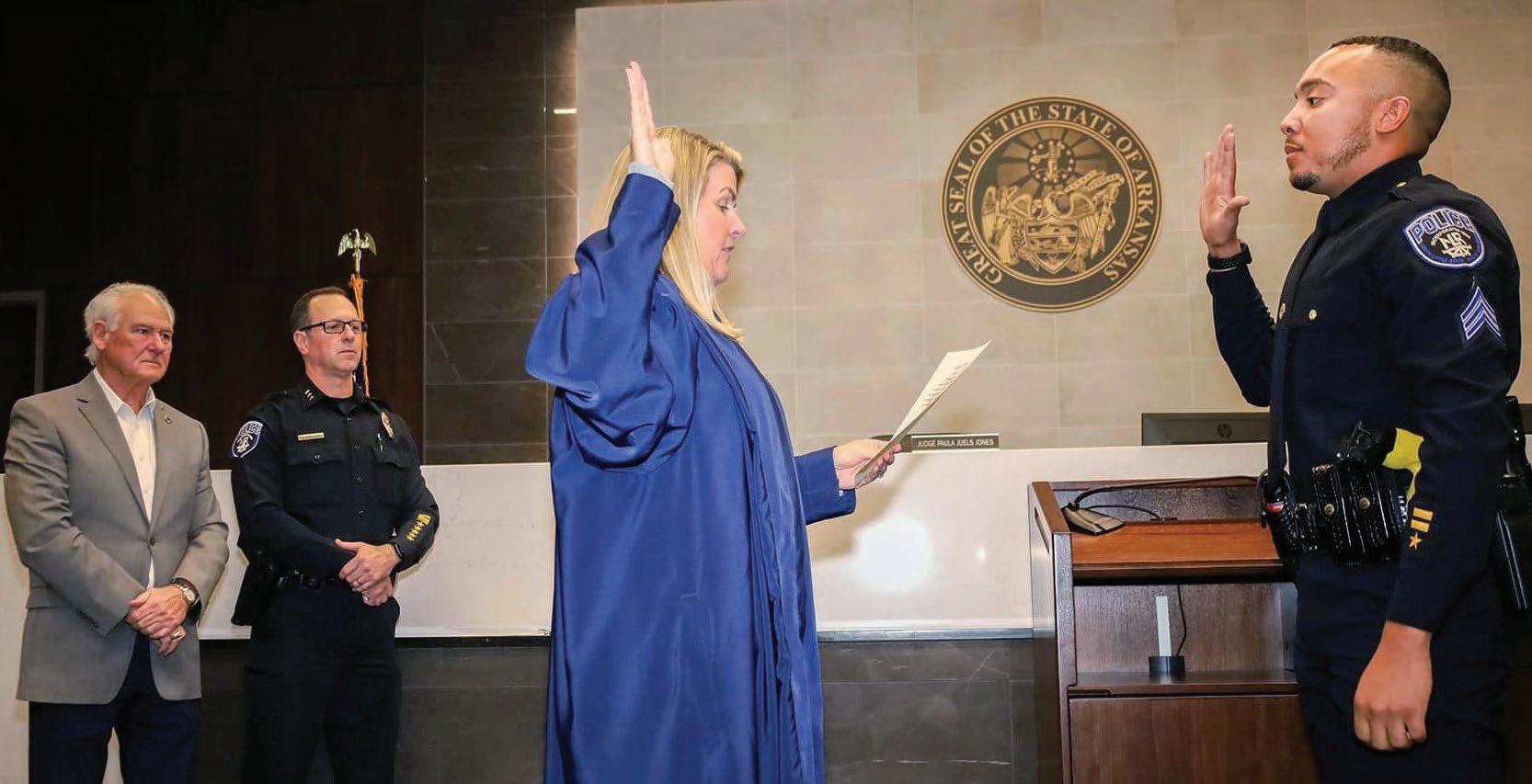 The North Little Rock Police Department recently celebrated the promotion of two officers. Officer Jhailan Rathey (pictured below) was promoted to Sergeant and Lieutenant Ron Messer (pictured above) was promoted to Captain. Congratulations to both Captain Messer and Sergeant Rathey. The North Little Rock Police Department continues to grow the group of men and women serving and protecting our city by providing an opportunity for growth in a fulfilling and nurturing environment. Scan the QR code to learn more about becoming part of a great team.