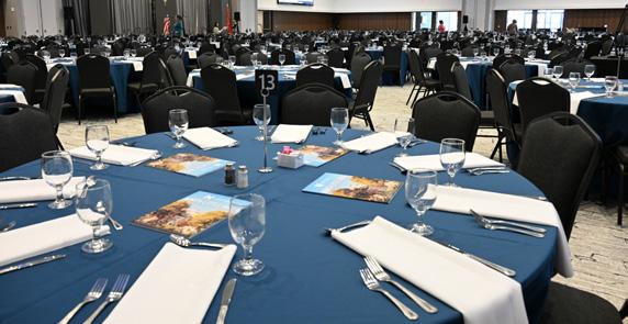 Centennial Bank Ballroom spans 12,600 square feet with 21-foot ceilings. The ballroom can be divided into sections for breakout meetings.