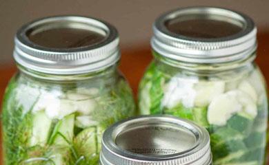 Empty jars used for vegetables, meats, and fruits to be processed in a pressure canner need not be pre-sterilized. It is also unnecessary to pre-sterilize jars for fruits, tomatoes, and pickled or fermented foods that will be processed 10 minutes or longer in a boiling-water canner.