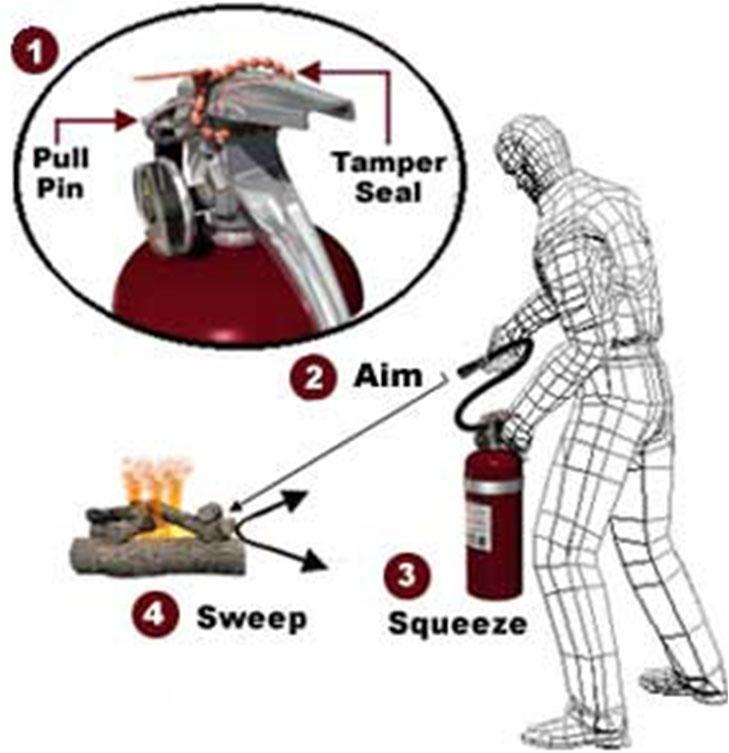If you use a fire extinguisher always position yourself with a way out. Don’t let the fire come between you and your exit. You or someone should first pull a fire alarm or notify others of the fire and call 911.