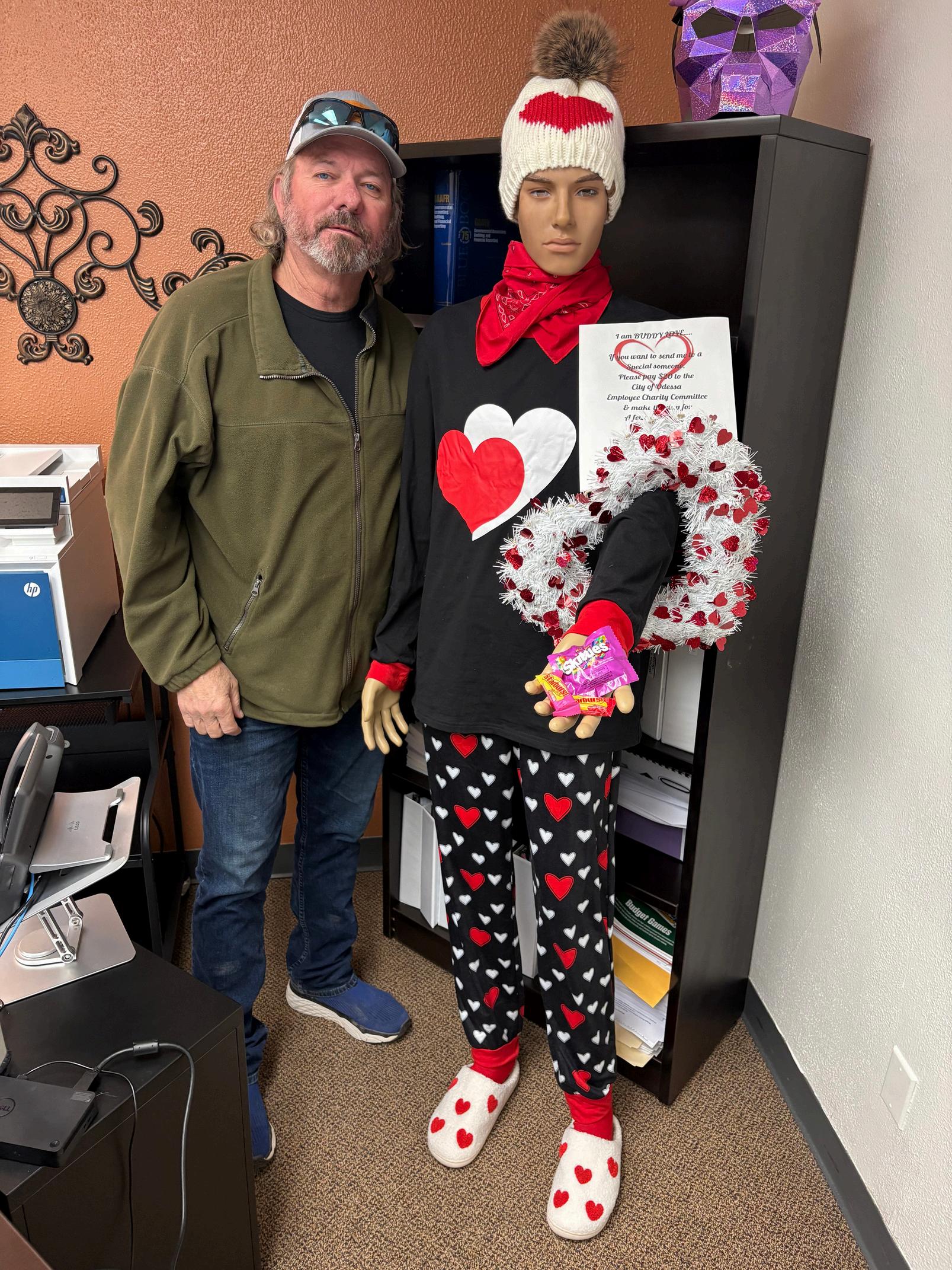 He has a heart for giving! Director of Building Services Scott Anderson has launched a new campaign to help raise money for City employees in need All donations will benefit the City’s Employee Charity Committee and support employees year-round So how does it work? An unforgettable mannequin named “Buddy” travels from department to department, spreading both smiles and support For a $20 donation, Buddy can be placed in an employee’s office or near a coworker’s desk. Adding to the heart behind the project, Scott personally pays for Buddy’s costumes out of his own pocket. With 36 years of service to the City of Odessa, Scott continues to make a lasting impact by leading with generosity and positivity.