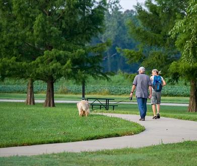 • Pavilions, playgrounds, and walking paths