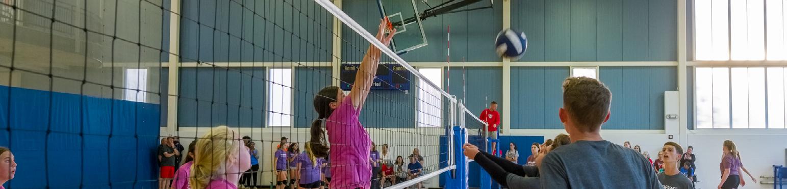 • The gymnasium – 12 basketball nets, volleyball nets, optional dividing curtain;