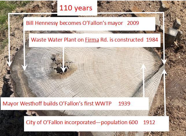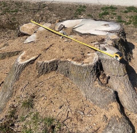 Removing dead trees has been a particularly large undertaking in that O’Fallon is losing large oak trees due to the horned gall. The horned galls on the oak trees are created by an insect that, in a fairly short time of five years, is killing massively large oak trees in the older subdivisions of our O'Fallon community. Oak trees that have survived adversities for the last 120 years or more are surrendering to the horned oak gall In the summer of 2023, we were forced to take down one of the five largest known oak trees on O’Fallon. This oak tree was along Firma Rd. at the Wastewater Treatment Plant. The majestic tree was gradually dying and shedding limbs onto Firma Rd; some measuring eighteen inches in diameter. We were sad to see the tree cut down but leaving it standing was unthinkable.