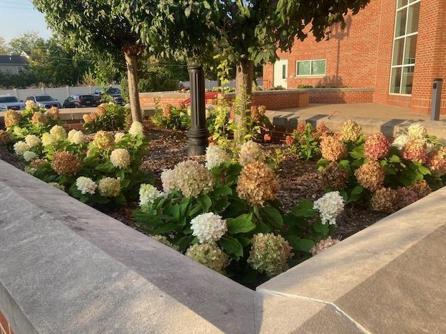 The landscape team joined together to renovate the landscaping in front of O'Fallon Senior Center during the winter of 2023. The Senior Center landscaping was the original planting from when the Senior Center was constructed over 20 years ago. Overgrown evergreens and Maple trees were removed the beds were reshaped and planted with 58 flowering shrubs that will add a significant amount of color and interest across the front of the building. New sod was installed to finish off the project. The plants that were installed were chosen to conform with a pink and white color theme but are fairly small and will need time to develop. This re-landscaping was done to complement the new construction on the West End of the building.