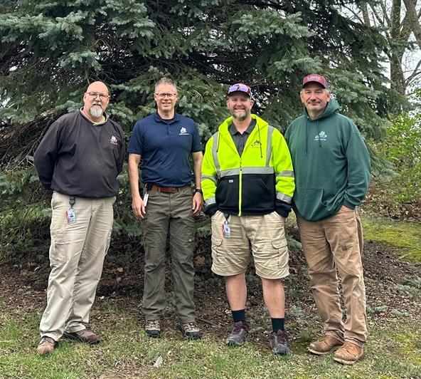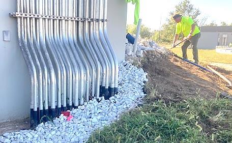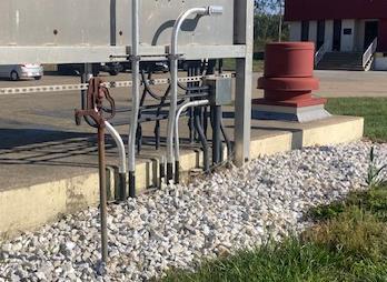 The new wastewater treatment plant facility came online during the summer of 2023 and the landscape division recognized that plastic and metal conduits coming down into the grass areas as well as some overhead structures would need to be protected from accidental bumps from the mowing equipment and string trimmers. The landscape team coordinated with the wastewater plant team to excavate and rock areas that needed protection. This process would protect structures and reduce string trimming which would speed up the Required to mow the property.