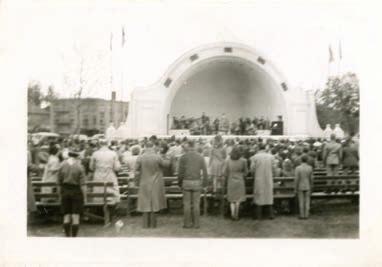 The community gathers for an event at the McLaughlin Bandshell, Memorial Park, date unknown. Image courtesy of Oshawa Museum, Saywell Collection.