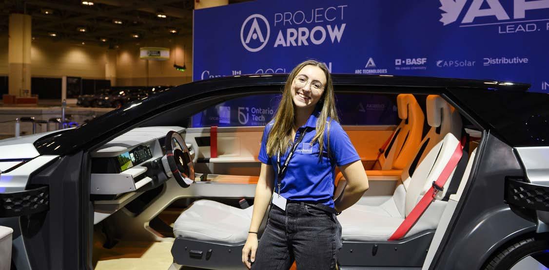 Known as Project Arrow, the mission was to build Canada’s first zero-emission concept electric vehicle. Project Arrow progressed from initial supplier meetings all the way to part design, fabrication, and full build on-site in the ACE Climactic Wind Tunnel at Ontario Tech University. Whereas today’s cars are typically built on assembly lines, every design and fabrication detail of the Arrow, from the decision on type and placement for every bolt, to the full installation and build, was completed on campus by a team of experts and future talent from the University’s engineering programs.
