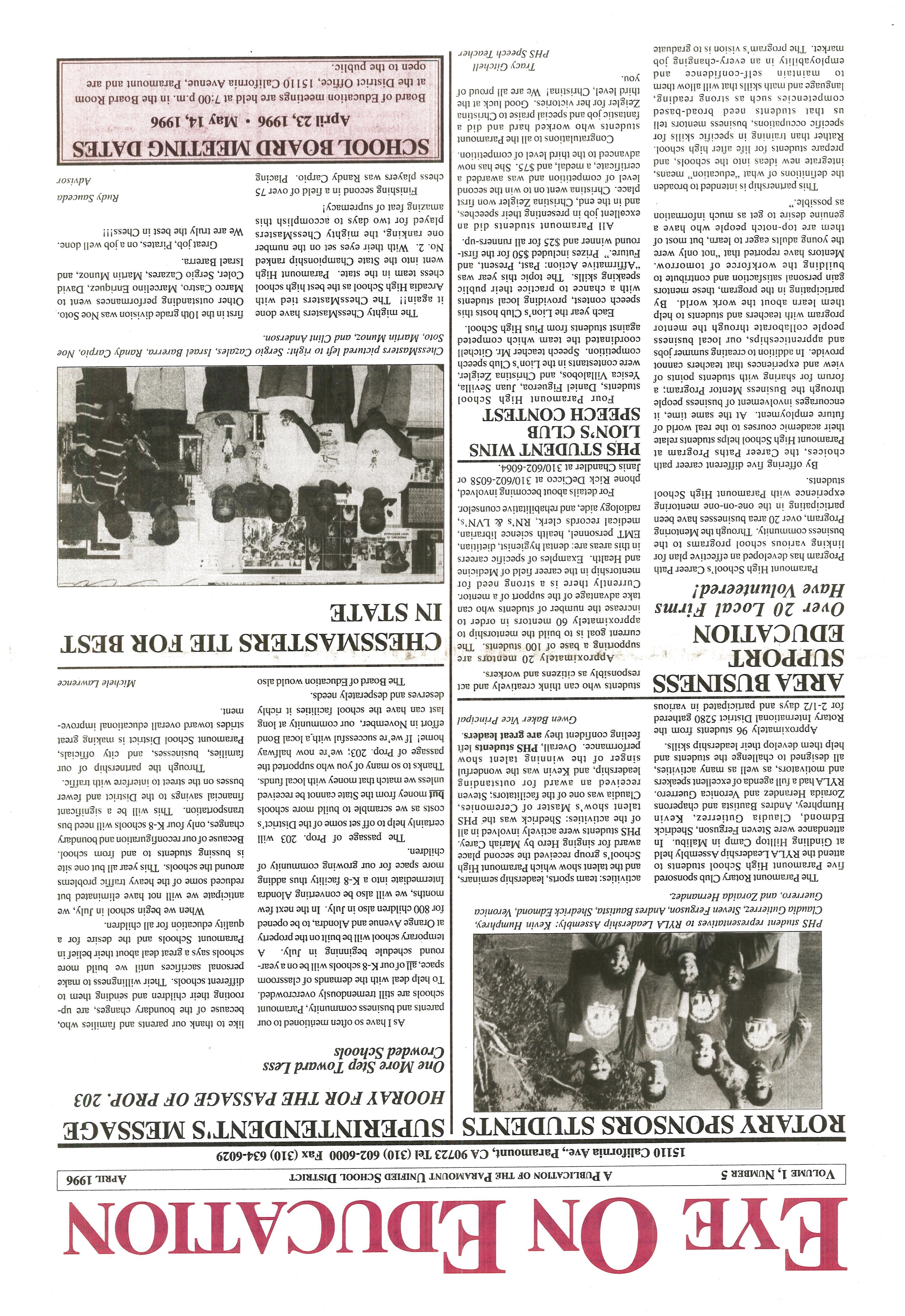 EYE ON THE EDUCATION APRIL 1996 by City of Paramount - Issuu