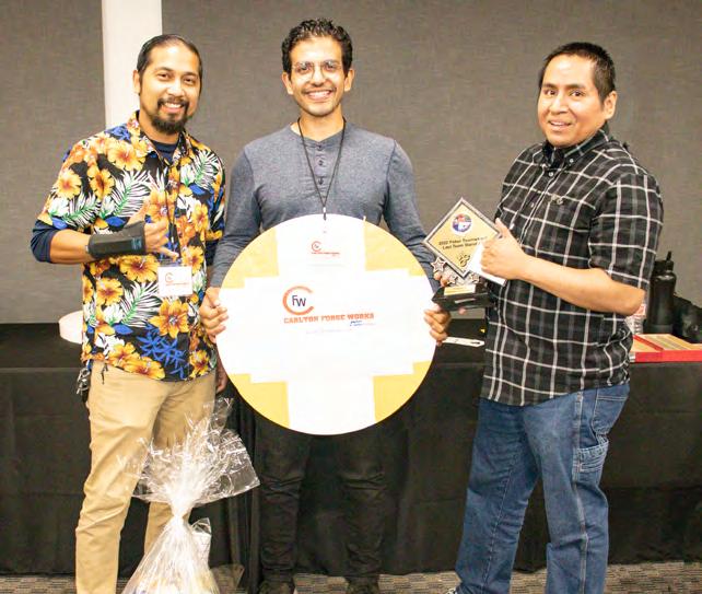 Competitors in the team contest fell one by one until the winners of the “Last Team Standing” trophy were the team from Carlton Forge Works (shown left to right at the lower right): Edmund Enriquez, Waleed Dahbour and Abraham Ramirez; not present for the photo were Rafi Balta and Juan Hernandez. Other companies that participated in the team competition were Transcom Telecommunications, WaveFront Technology, Herald’s Garage and Athens Services.