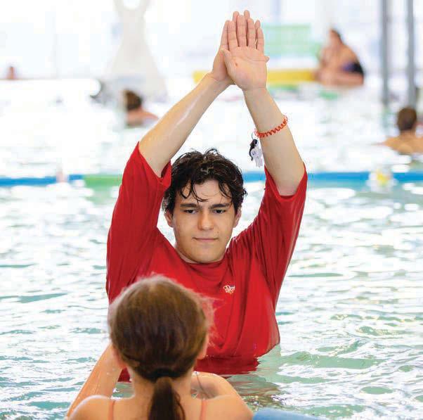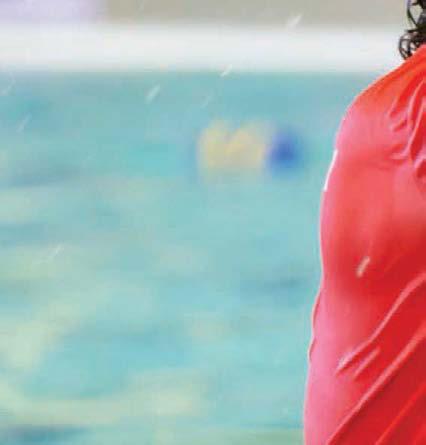 Can do shallow dives and cannonballs, eggbeater and scissor kick, swim 50 m front and back crawl, breaststroke for 25 m, sprint 25 m, interval training 4 x 50 m.