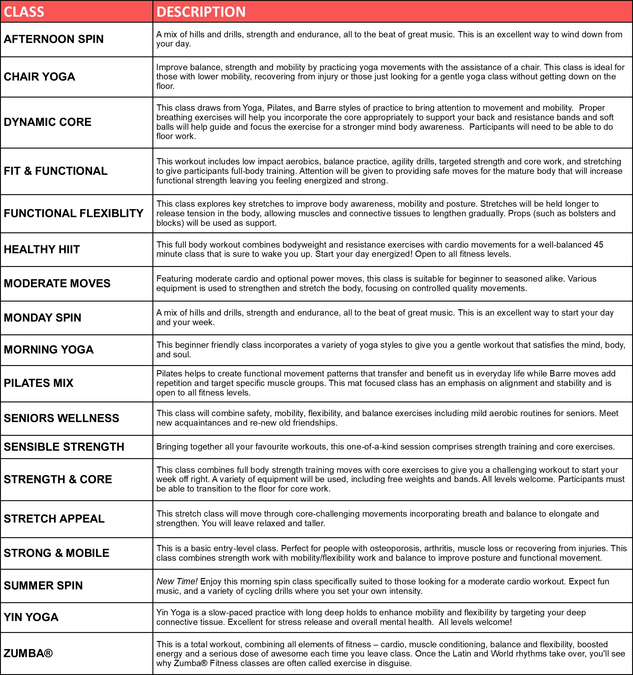 REGISTERED ADULT GROUP FITNESS PROGRAMS