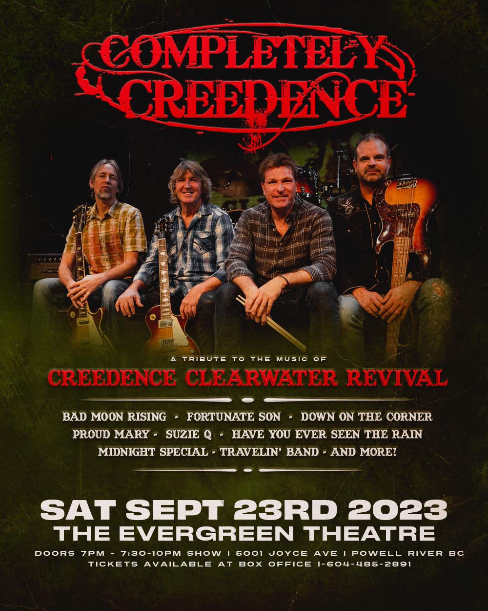 7:30PM SATURDAY SEPTEMBER 23RD AT THE EVERGREEN THEATRE. TICKETS ARE $49.35 AVAILABLE AT THE RECREATION COMPLEX.