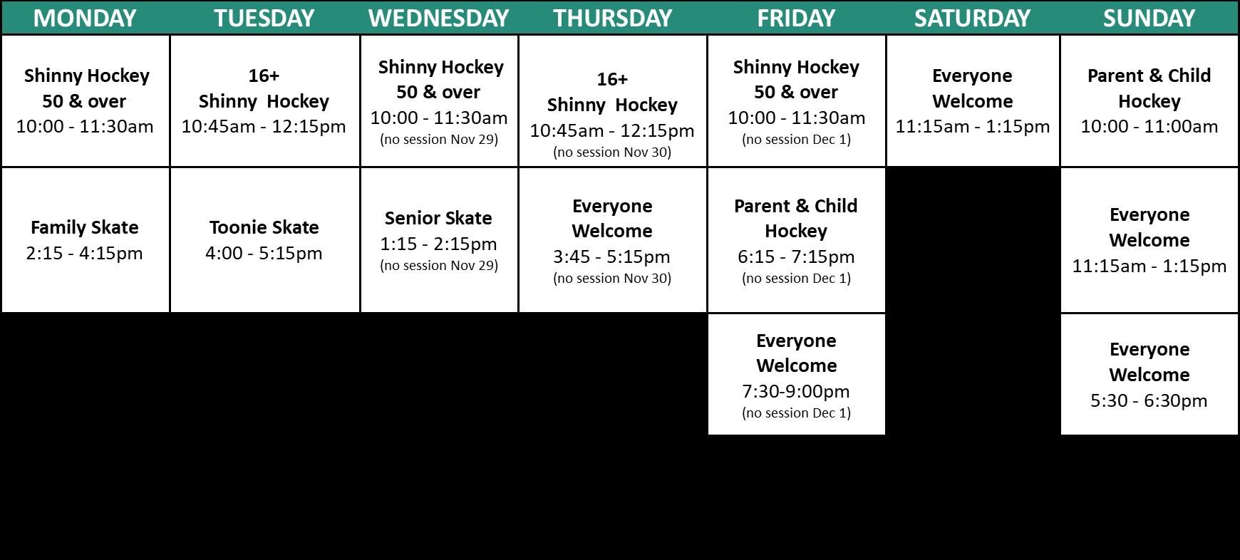 Whatisit? Freeadmissionto swimming,skating,orshinny hockeyfromthedayfollowing LabourDayuntilJune30th.