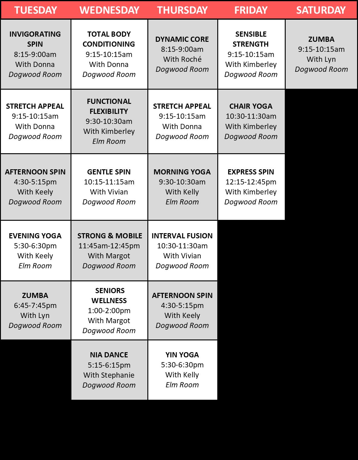 Tuesday from 6:00 - 7:00pm & Fridays from 6:45 - 7:45am Regular admission rates apply