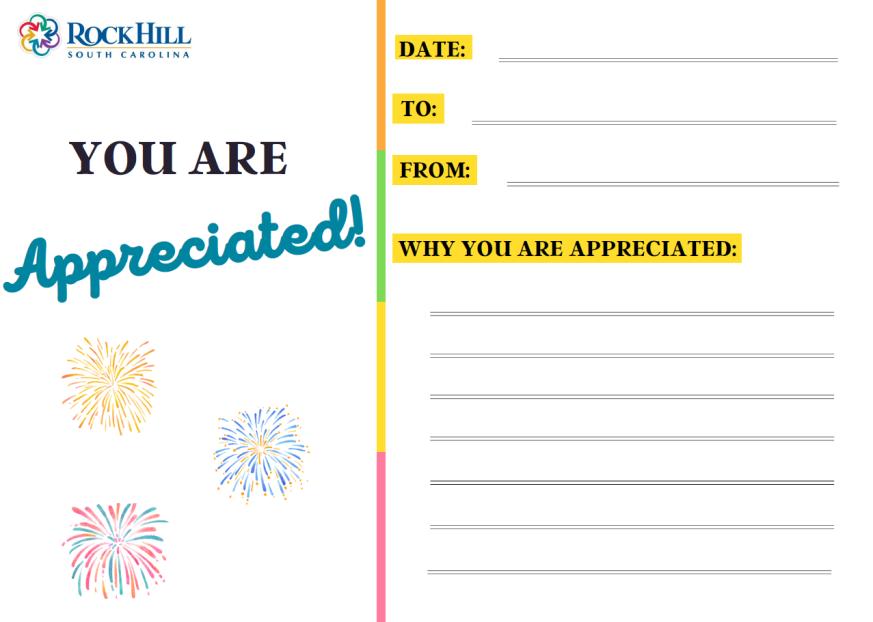 Share the love and gratitude! Look for these postcards in your area that can be dropped into interoffice mail to fellow employees. Give a shout out or show that you’re thankful for their hard work in making our City awesome!