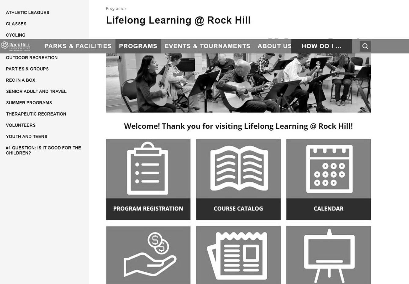 [1] Visit the website: cityofrockhill.com/ lifelonglearning.