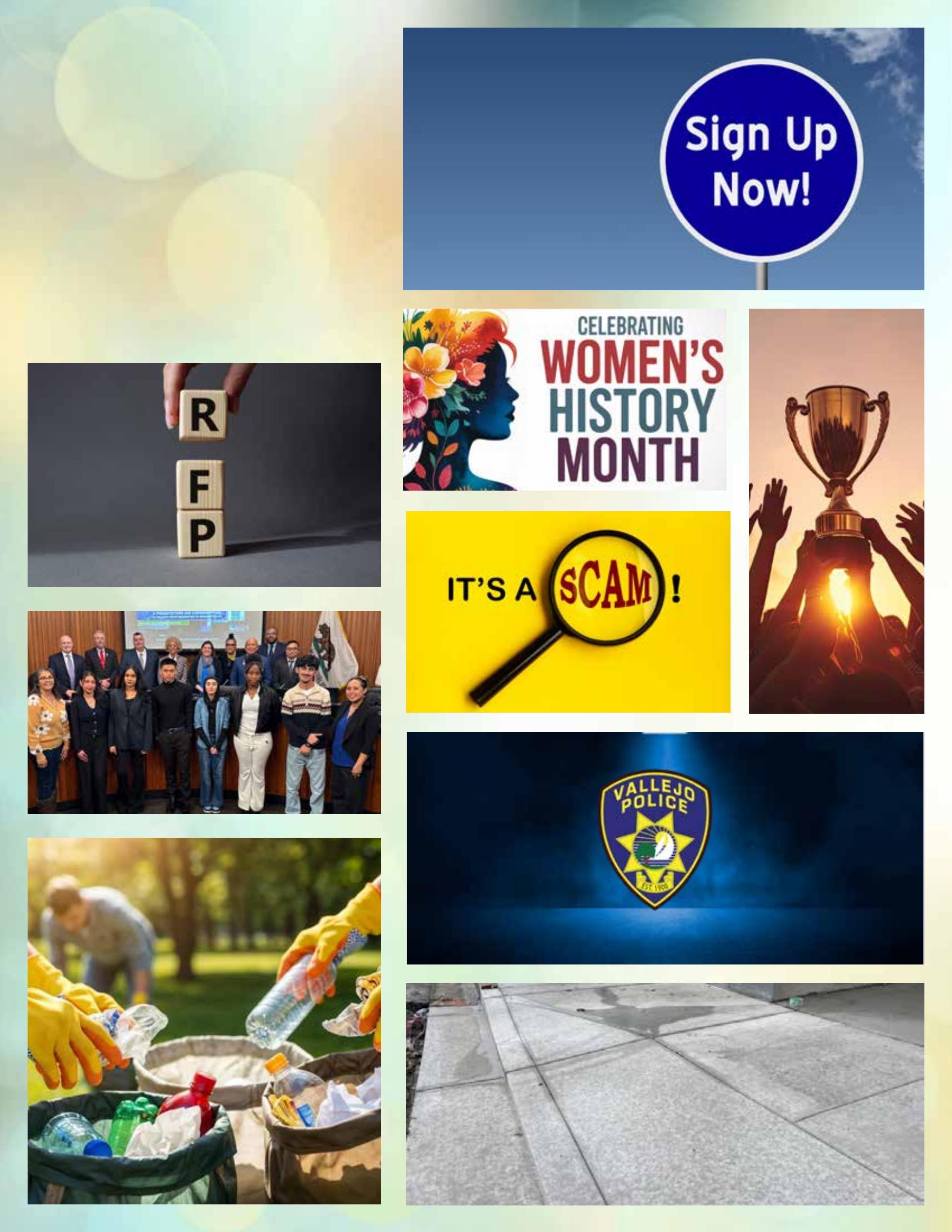 ¡Vallejogana!-14Delegaciónsedirige aWashingtonD.C.-17¡Cuidado conlasestafas!18¡Limpieza!-21Reformapolicialen elpuntodemira-22Actualizacióndelaautopista29/SonomaBlvd.-24
