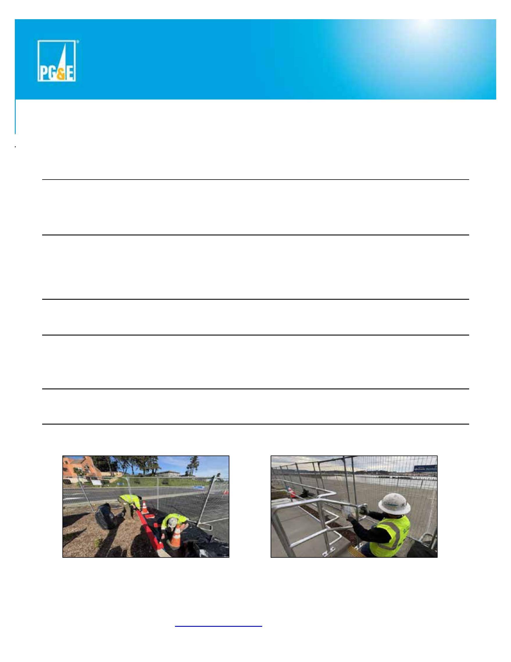 Sinecesitamásinformación,comuníqueseconlalíneagratuitaderespuestadePG&Eal(866)247-0581oescribaaremediation@pge.com. Sehablaespañol.