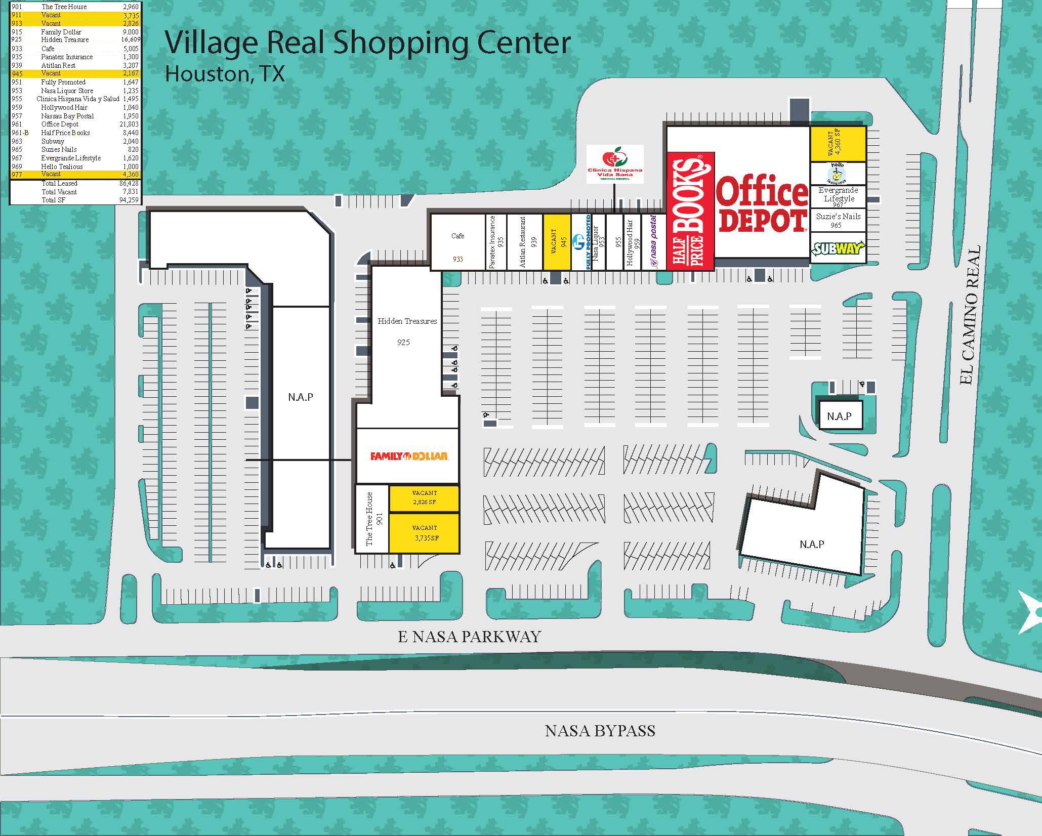 Village Real offers two prime second-generation restaurant endcaps. One 3,735 square foot space fronts NASA Parkway and one 4,360 square foot space fronts El Camino Real.