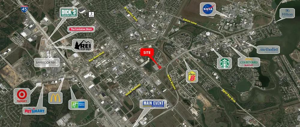 Bay Area Square, located at the northwest corner of Bay Area Boulevard and Highway 3 features multiple location opportunities.