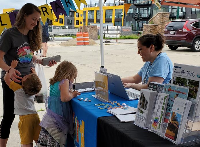 The West Allis Library’s outreach returned in summer 2022 with pop-up visits to the Farmers Market, beer gardens, Liberty Heights Park, and Rec Department Summer Camps.