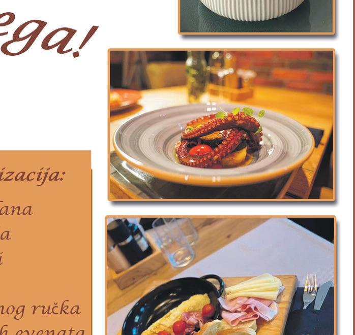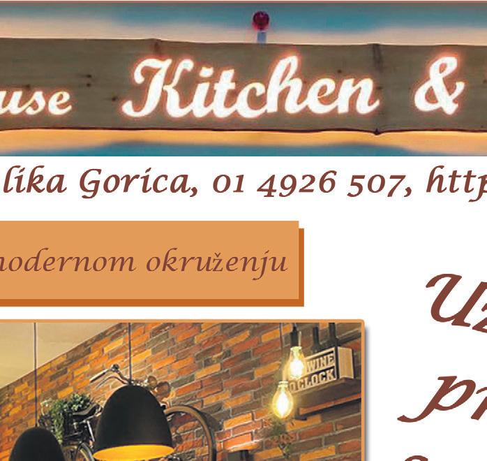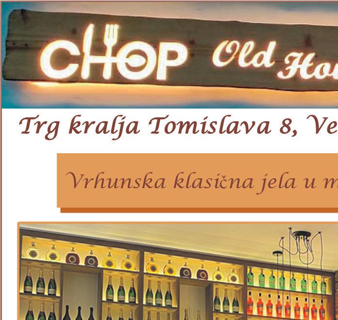 toriju za poslovne sastanke, imaju i osam soba... I, što je vjerojatno i najvažnije, imaju fenomenalnu hranu, koja nastaje u kuhinji koju vodi Hrvoje Nakić, chef s Michelinovom preporukom i s iskustvom iz nekoliko zagrebačkih restorana. - Hrvoje je iz velikogoričkog kraja pa ima zadaću i smišljati jela speci čna i prikladna za turopoljski kraj. Jelovnik nam je vrlo raznolik, a moj favorit je teleći obraz. To je san snova. Meso je mekano, ukusno, a to je i nešto što nas izdvaja, što nitko drugi nema - kazala je Jelena. Roštilj, tjestenine iz kućne radinosti, rižota, toplo-hladne salate, riba, burgeri, dječji meniji... Sve je to u ponudi "Chop Old Housea", koji radnim danima ima i povoljnu ponudu gableca, dok se nedjeljom nudi ručak po povoljnijim cijenama...