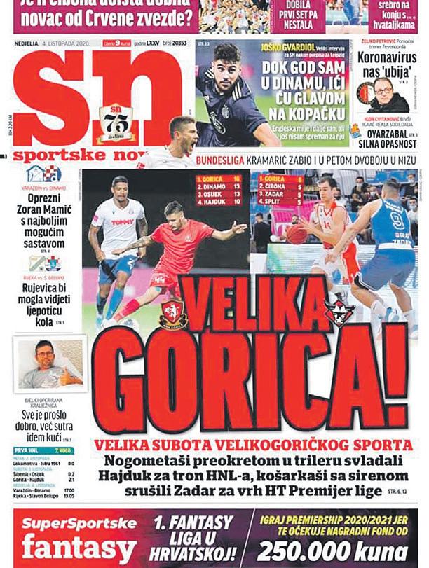 I zaslužuje naslovnu stranicu jedini sportskih dnevnih novina u državi. Pogotovo kad se spoji s onim što se istoga toga dana, samo nešto ranije, dogodilo nekoliko stotina metara dalje, u dvorani. Jer nisi ni stigao sabrati dojmove od svog tog nogometa, srknuo si gutljaj kave i okrenuo dva ili tri lista, a evo već novog razloga za ponos... "Gorica u zadnjoj sekundi pobijedila Zadar i preuzela vrh!"