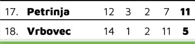 biljno ove sezone. Pokazali su to i u sudaru s nesretnim Posavcem, u kojem je Mladost slavila s visokih i uvjerljivih 7-0. Alan Pejak, treba i to reći, zabio je posljednjih pet komada, od trećeg do sedmog! Gužva na tablici je velika, a u sredini su i Kupa, i Meštrica, i Dinamo Hidrel, i Buna. U najvećim problemima zasad je Posavec iz Leknena, manje zbog sedam primljenih komada u Obrezini, a puno više zbog samo osam osvojenih bodova u prvih 12 utakmica. Srećom po Posavčane, u ligi su i Dubrava Vrbovečka i Zvekovac, koji su još slabiji, na pet, odnosno dva boda.