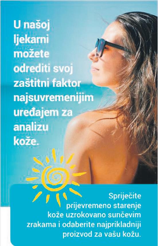 Dermokozmetička industrija nudi veliki izbor fotozaštite, čak i u dekorativnoj kozmetici, prilagođena različitim tipovima kože i speci čnim problemima. Najbolji savjet u odabiru adekvatne fotoprotekcije može vam dati vaš ljekarnik. Uz prethodnu najavu u podružnici 2, Velika Gorica, Zvonimirova 5, u Ljekarnama Zagrebačke županije pomoću najsuvremenijeg uređaja vršimo analizu kože, uz preporuku individulne kozmetike koja najbolje odgovora potrebama vaše kože. Ovoga ljeta zatražite kod našeg educiranog osoblja i savjet o zdravom sunčanju.