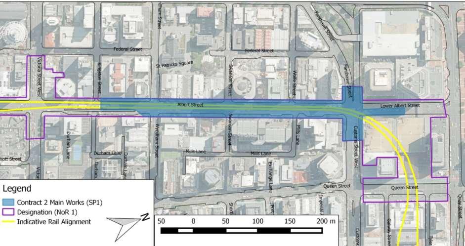 The City Rail Link (CRL) project comprises the construction, operation and maintenance of a 3.4 km underground passenger railway, running between Britomart Station and the North Auckland Rail Line in the vicinity of Mt Eden station. The works relating to this Industrial and Trade Activities Environmental Management Plan (ITA EMP) constitute part of the enabling works for the CRL. The works (the Project) involve the construction of twin rail tunnels within the Albert Street road corridor from Customs Street West to Wyndham Street. The tunnels will be constructed using a staged cut and cover method and are expected to take 33 months to complete. Figure 1 outlines the extent of works for the Project.