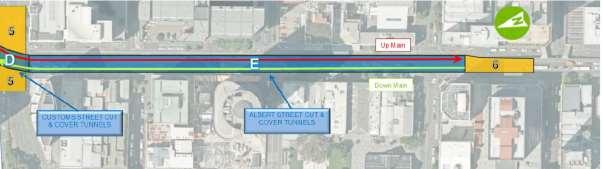 The Project comprises Active Construction Zones (ACZ) D and E (refer Figure 2), which were identified during the CRL Britomart to Wyndham enabling works consenting process to delineate construction methodology for different work areas. This ITA EMP does not apply to the ACZs because potentially contaminated stormwater generated in the ACZs will be pumped out of the trenches for treatment prior to discharge to the public stormwater system or managed as part of the erosion and sediment control processes (refer to the Project Erosion and Sediment Control Plan (ESCP) –Appendix I of the Project CEMP)