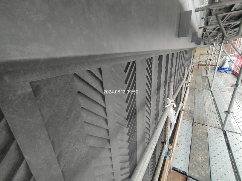 • Porcelain cladding brackets in the Mercury Lane escalator shaft are progressing.
