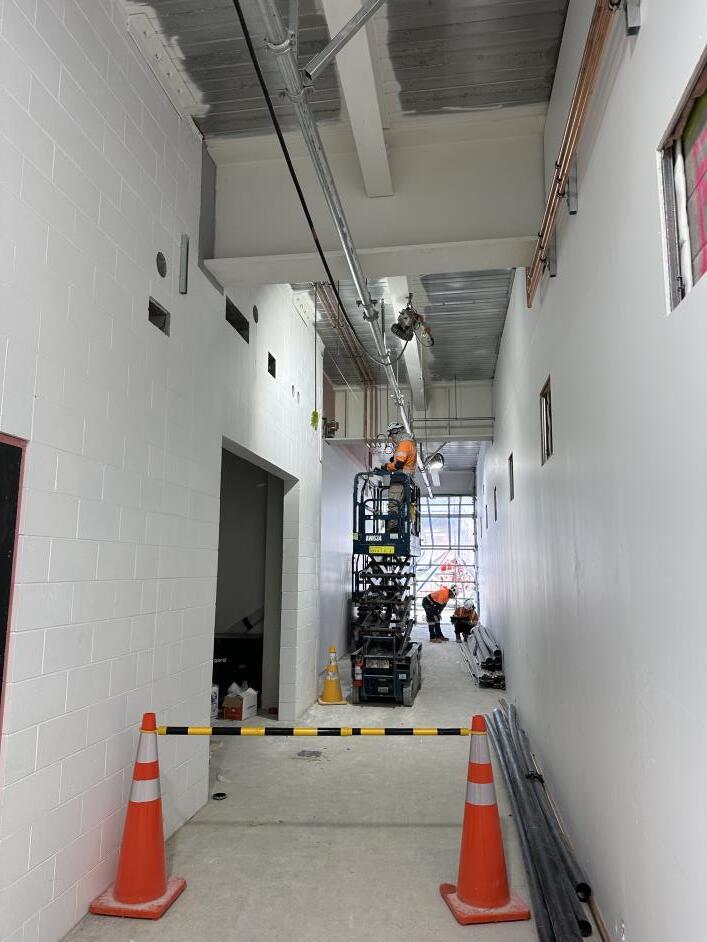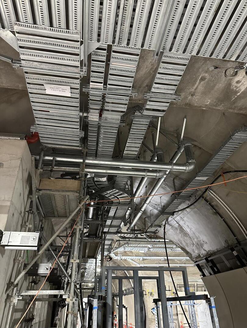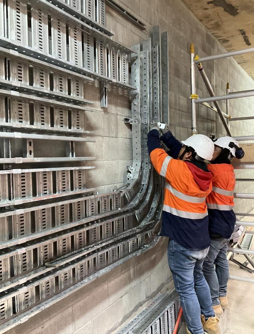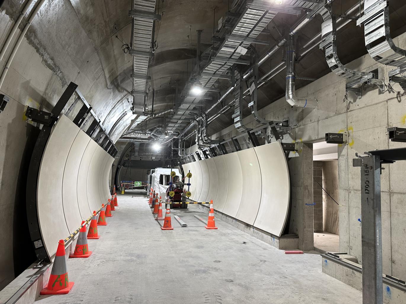 Walls are being gibbed and painted then handed over to the MFH systems fit-out (fire suppression, plumbing and ventilation) and the electrical and communications team to install cable containment and run the cables. There are 400km of cables to install at Karanga-a-Hape station alone.