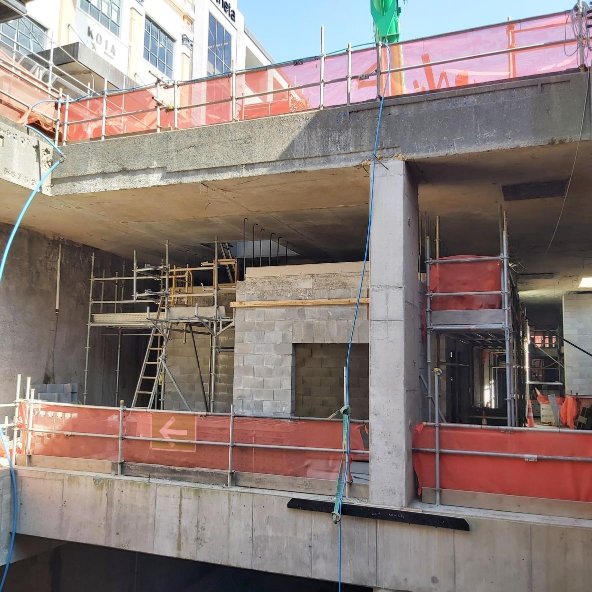 • Further wayfinding lighting has been installed along the hoarding (Angus Muir neon triangles).