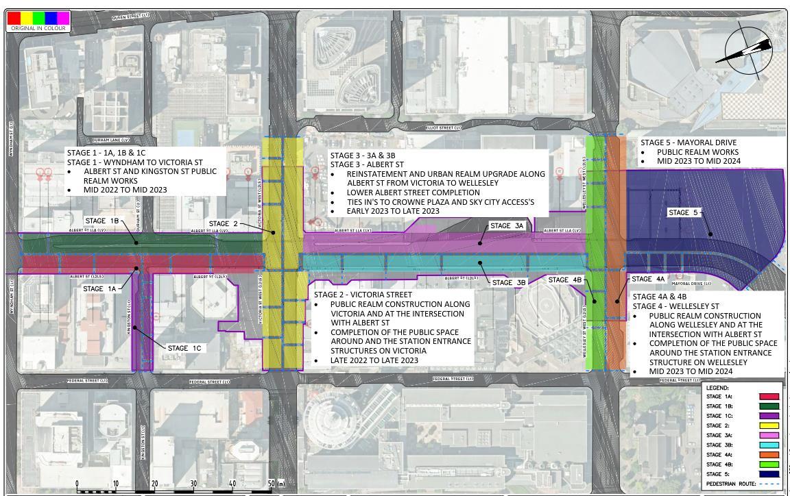 In May 2020 Auckland Council confirmed the Outline Plan and associated Construction Environmental Management Plan (CEMP) and Delivery Works Plans (DWPs) for the Aotea Station main construction works (‘Main Works’). This document is an addendum to the Main Works CEMP1 and provides an overarching framework for the management of construction effects associated with the public realm reinstatement (PRR) phase of works.