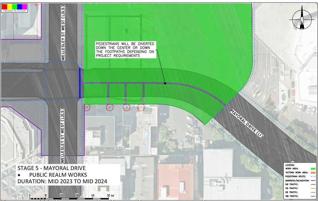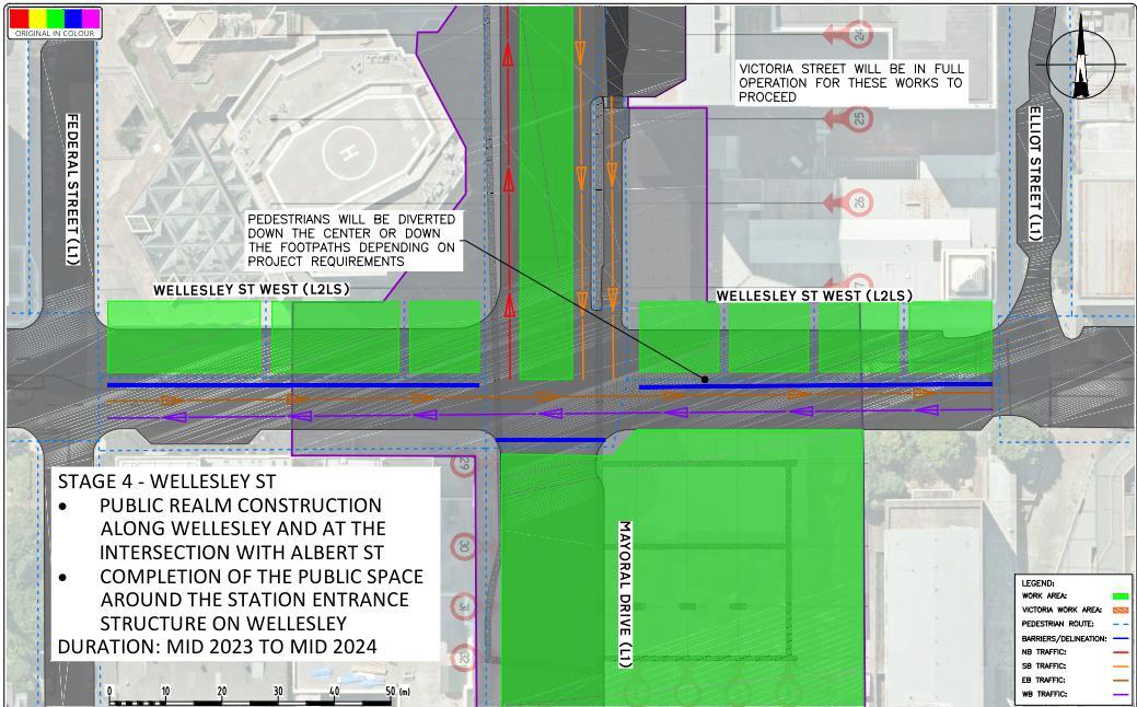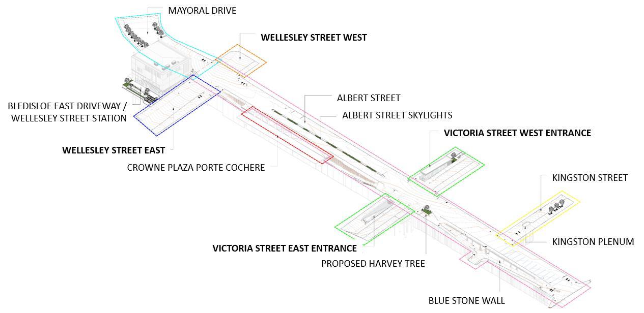 - Public realm works along Wellesley Street and at the intersection with Albert Street.