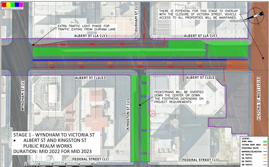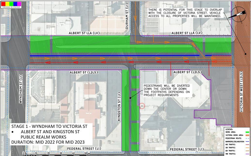 - Public realm works along Victoria and at the intersection with Albert Street.