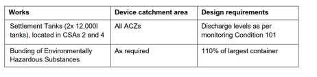 99 The Consent Holder shall ensure that the following structural controls are constructed for the following catchment areas and design requirements and they are completed prior to discharges commencing from the site.