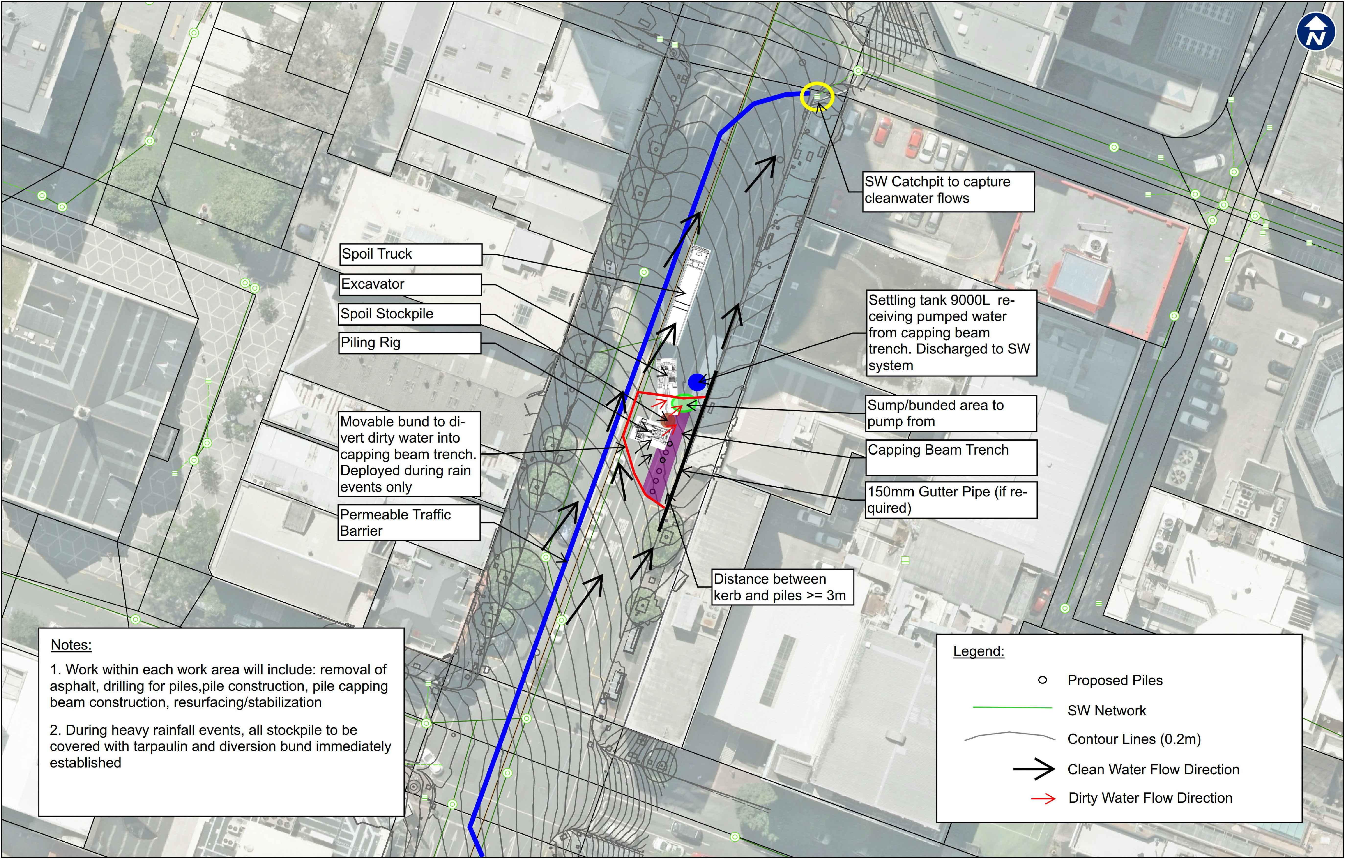 This ESCP and the CTMP will be implemented throughout the entire construction period and will be the primary tool for erosion and sediment control for the Project. They are ‘living documents’ which may undergo expansion and updates as the Project progresses and working conditions become clearer. Draft versions of the Plans were discussed with the AC monitoring team on Wednesday 2nd March 2016. Agreement on the general approach to sediment control was made during this meeting. It was also noted during the meeting that the choice of specific water treatment equipment may evolve from what is specified in this ESCP. However any change to the ESCP or CTMP will be submitted to Auckland Council (AC) (Team Leader Central Monitoring) for certification. No construction activity will commence until certification from AC is provided and no activity reliant upon a change to the ESCP or CTMP will be undertaken until the change has been certified. This ESCP has been prepared in consultation with a Community Liaison Group (CLG) prior to submission to Auckland Council (as per condition 19 of the Britomart to Wyndham consent conditions). A record of these consultation outcomes is included in Appendix F.