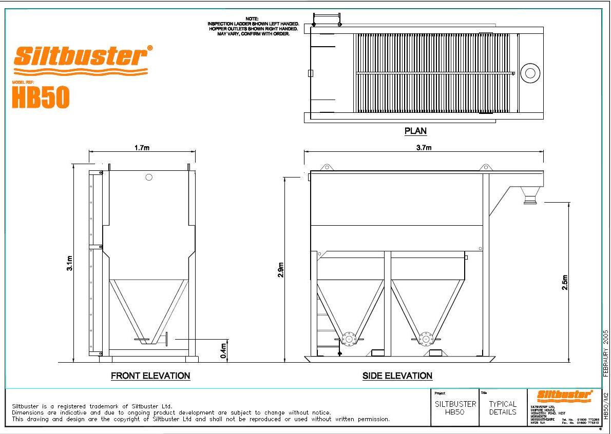 The Siltbuster HB50 itself requires no power, has no filters or moving parts and apart from emptying, the unit is virtually maintenance free.
