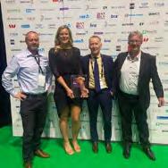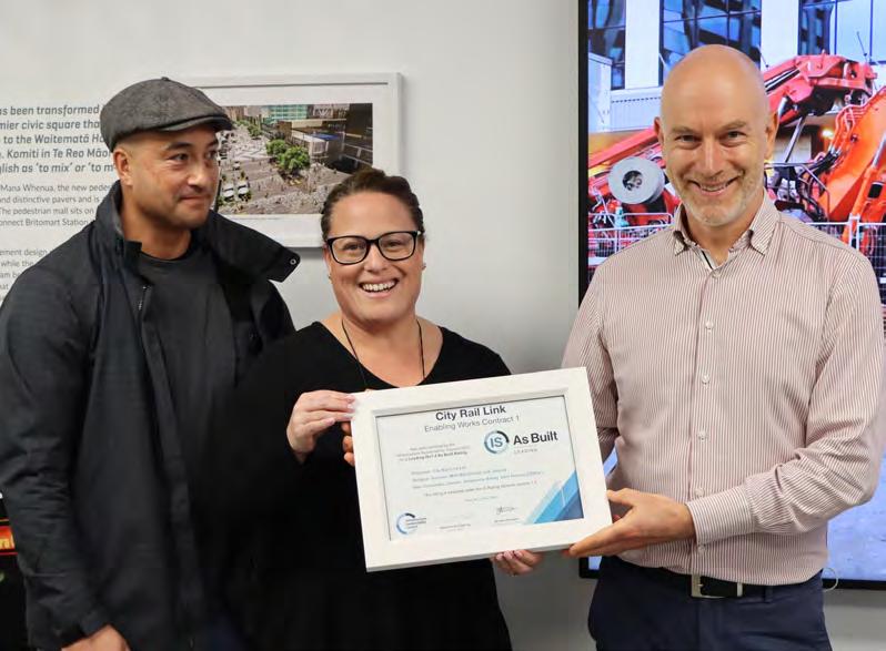 Paora Puru and Josie Wall (Mana Whenua) and Nick Braxton (CRL Ltd) receiving the 'C1 ISC Leading As Built Rating' award