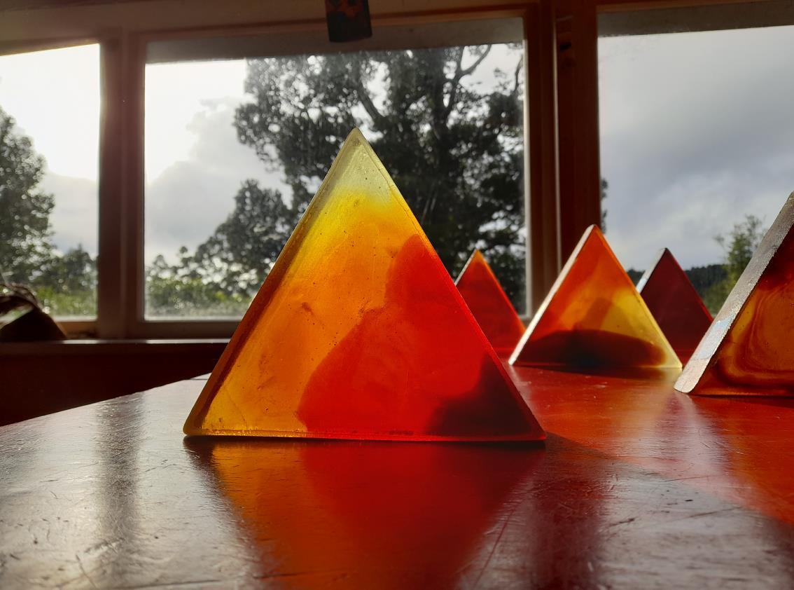 • All 53 lava coloured glass triangles have been created and will be placed into the waterwall feature at the end of this year.