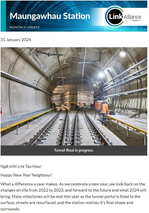 Section 8.4 of the Maungawhau Main Works SIBDDWP indicates the Link Alliance’s commitment to providing continuous up to date engagement throughout the course of the Construction Works.