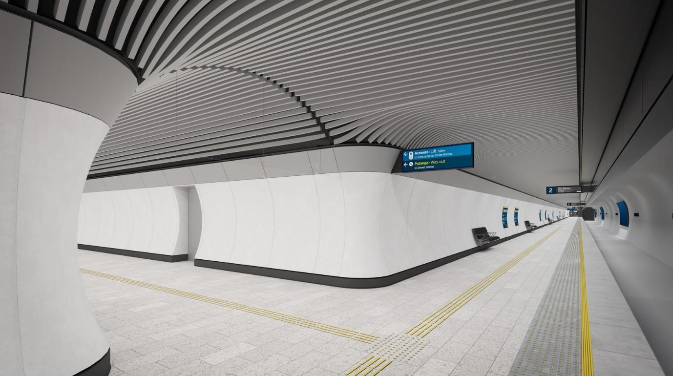 • Main construction works2 (construction of the station below ground and mined tunnels for the rail tracks) to be undertaken from early 2020 through to late 2023; and