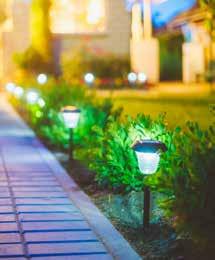 Solar lighting is an energy-efficient and cost-effective method for lighting outdoor spaces. Use a solar light to increase visibility and security with porch and sidewalk lighting without racking up the electric bill. By strategically placing uplights to highlight gardens or landscape features, you can create a sophisticated look, or use a string of solar bulbs to cast a glow on outdoor living spaces, making the backyard fun year-round.