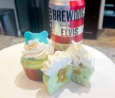 This is an Elvis-inspired original recipe. Dean Vickers, owner and head baker, experimented with a pack of Brew Dog’s Elvis Juice and created a multi-dimensional, flavorful cupcake. There are three parts to the recipe: the cupcakes, the lime curd filling and the cream cheese frosting.