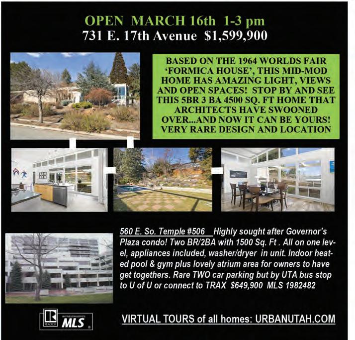 Both shows run at Finch Lane Gallery (54 Finch Lane) now through April 19, with a Gallery Stroll opening exhibition on Friday, March 15 from 6 p.m. – 9 p.m., as well as a closing reception during the April Gallery Stroll on April 19. The gallery is open Monday and Wednesday – Friday 9 a.m. – 5 p.m., and Tuesday 9 a.m. – 8:30 p.m. Visit saltlakearts.org/programs/exhibitions for additional exhibition details and artist bios. (SR)